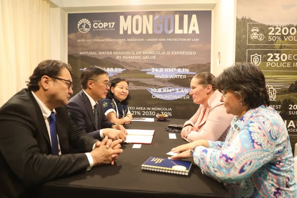 БОУАӨ-ийн сайд бөгөөд COP17-ын Үндэсний хорооны дарга Б.Батбаатар , COP17-ын Ажлын албаны дарга Д.Батмөнх нар Дэлхийн банкны Уур амьсгалын өөрчлөлтийн асуудал хариуцсан дарга Валериа Хиккейтэй ирэх оны 8 дугаар сарын 17-28-ны өдрүүдэд Улаанбаатар хотноо зохион байгуулагдах Цөлжилттэй тэмцэх тухай НҮБ-ын конвенцын Талуудын 17 дугаар бага хурлын бэлтгэл ажлын хүрээнд уулзалт хийлээ.
