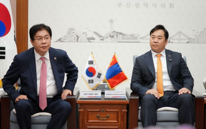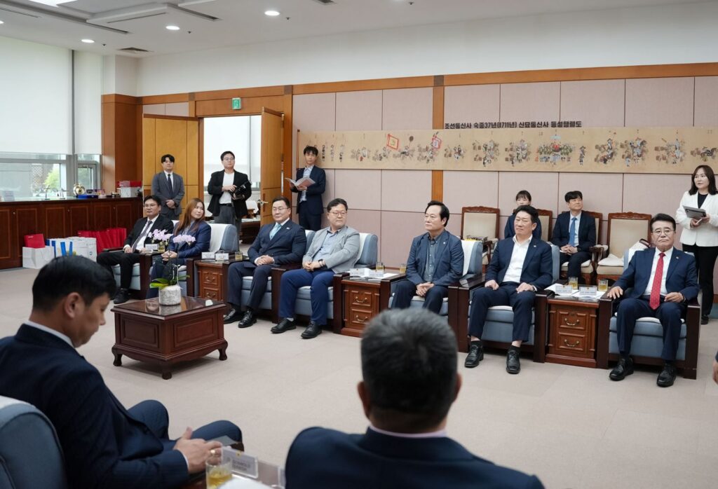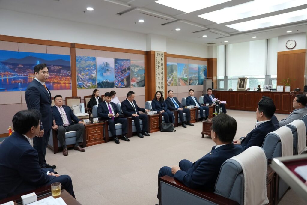 НИТХ-ын дарга А.Баярын Пусан хотод хийж буй ажлын айлчлал нутгийн өөрөө удирдах дээд байгууллага, Пусаны иргэдийн төлөөлөгчдийн хурлын танхимд үргэлжиллээ. Пусаны ИТХ-ын дарга Ahn Sung‑Min болон төлөөлөгч, Ажлын албаныхан манай айлчлалын баг бүрэлдэхүүнийг хүлээн авч уулзан, халуун дотно, ажил хэрэгч яриа өрнүүллээ.
