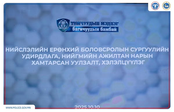 Цагдаагийн байгууллагаас Хүүхдийн эрхийн тухай, Хүүхэд хамгааллын тухай хуулийн хэрэгжилтийг хангах, хүүхдийн эсрэг гэмт хэрэг, зөрчлийн шийдвэрлэлтэд дэмжлэг үзүүлэх, хамтран ажиллах, урьдчилан сэргийлэх ажлын үр нөлөөг нэмэгдүүлэх зорилгоор Ерөнхий боловсролын сургуулиудын удирдлага, нийгмийн ажилтнуудтай “Томчуудын мэдлэг-Багачуудыг бамбай” сэдэвт хэлэлцүүлгийг өнөөдөр /2025.10.10/ зохион байгууллаа.