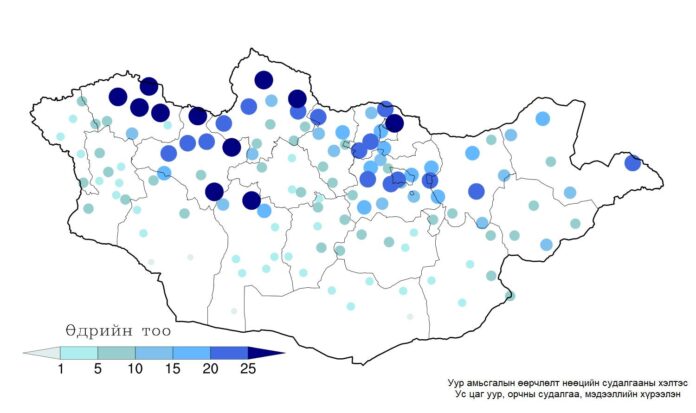 Эх сурвалж: Уур амьсгалын өөрчлөлт, нөөцийн судалгааний хэлтэс Ус цаг уур, орчны судалгаа, мэдээллийн хүрээлэн