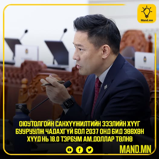 Нүүр хуудасНийгэмО.Батнайрамдал УИХ-ын гишүүн: Оюутолгойн санхүүжилтийн зээлийн хүүг бууруулж чадахгүй бол 2037 онд... Нийгэм О.Батнайрамдал УИХ-ын гишүүн: Оюутолгойн санхүүжилтийн зээлийн хүүг бууруулж чадахгүй бол 2037 онд бид зөвхөн ХҮҮД нь 18.0 тэрбум ам.доллар төлнө By Mandmn 8 сар 21, 2025 0 32 FacebookTwitterPinterestWhatsApp FacebookTwitterPinterestWhatsApp өмнөх нийтлэлУс ихээр тогтдог байршлуудад ус зайлуулах шугам угсрах ажлыг сүүлийн хоёр жилд эрчимжүүлсэнДараагийн нийтлэлССАЖЗЯ: “Нүүдэлчин” дэлхийн соёлын фестивальд 400 орчим тамирчин өрсөлдөж, 100 гаруй хүлэг уралдахаар бүртгүүлжээ Mandmnhttps://mand.mn/ Холбоотой мэдээ Мэдээ НИЙСЛЭЛ: Нэгдүгээр сарын 20-ноос эхлэн 410 цэгээр нөөцийн мах худалдаална Mandmn - 1 сар 9, 2026 Мэдээ ЕТГ: “Тэмээн дээрээс наран ойрхон” өвлийн их наадам Дундговь аймагт болно Mandmn - 1 сар 9, 2026 Мэдээ УИХ: ТБХ нь УИХ-ын намрын ээлжит чуулганаар 44 асуудлын хүрээнд долоон хууль, УИХ-ын гурван тогтоолыг батлуулж, яам, агентлаг, харьяа байгууллагын найман тайлан, мэдээллийг хэлэлцэн... Mandmn - 1 сар 9, 2026 ХАРИУ ҮЛДЭЭХ Хариу цуцлах санал: Сэтгэгдэл оруулна уу! нэр:* энд нэрээ оруулна уу и-мэйл:* Та буруу имэйл хаяг оруулсан байна! Энд имэйл хаягаа оруулна уу вэб хуудас: Намайг дараагийн удаа сэтгэгдэл бичихдээ энэ хөтөч дээр миний нэр, имэйл, вэбсайтаас аваарай. Δ This site uses Akismet to reduce spam. Learn how your comment data is processed. ИХ УНШИГДСАН НИЙСЛЭЛ: Нэгдүгээр сарын 20-ноос эхлэн 410 цэгээр нөөцийн мах худалдаална 1 сар 9, 2026 ЕТГ: “Тэмээн дээрээс наран ойрхон” өвлийн их наадам Дундговь аймагт болно 1 сар 9, 2026 УИХ: ТБХ нь УИХ-ын намрын ээлжит чуулганаар 44 асуудлын хүрээнд долоон хууль, УИХ-ын гурван тогтоолыг батлуулж, яам, агентлаг, харьяа байгууллагын найман тайлан, мэдээллийг хэлэлцэн... 1 сар 9, 2026 “Торгуудын их нүүдэл” нь Монголын түүхэн дэх хамгийн хүнд, хамгийн эмгэнэлт нүүдэл байлаа 1 сар 9, 2026 илүү их ачаалах