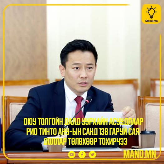 Нүүр хуудасНийгэмО.Батнайрамдал УИХ-ын гишүүн: Рио Тинто компанийн зүгээс “Pentwater Capital Management” тэргүүтэй жижиг... Нийгэм О.Батнайрамдал УИХ-ын гишүүн: Рио Тинто компанийн зүгээс “Pentwater Capital Management” тэргүүтэй жижиг хөрөнгө оруулагчдад 138.75 сая ам.доллар олгох тохиолцоонд хүрэх санал тавьсан байна By Mandmn 6 сар 20, 2025 0 12 FacebookTwitterPinterestWhatsApp FacebookTwitterPinterestWhatsApp өмнөх нийтлэлНОБГ: Дэслэгч Д.Ганзориг “Онцгой байдлын албаны анхны сайдын нэрэмжит шагнал”-ын эзэн боллооДараагийн нийтлэлМОНЦАМЭ ХАМТ ОЛОН: МОНЦАМЭ агентлагийн дарга асан Э.Содонтогос агентлагийн нэр хүндэд халдаж, ажилтнуудын эрхийг ноцтой зөрчлөө Mandmnhttps://mand.mn/ Холбоотой мэдээ Мэдээ УИХ: Шүүхийн ерөнхий зөвлөлийн шүүгч бус гишүүнд нэр дэвшигчийн сонсголыг зохион байгуулна Mandmn - 12 сар 15, 2025 Мэдээ ЗГ: Төрийн өмчит 18 компани, үйлдвэрийн газрын хувьцааг худалдаж, нээлттэй хувьцаат компани болгоно Mandmn - 12 сар 15, 2025 Мэдээ ЦХИХХЯ: Төрийн цахим үйлчилгээний зохицуулалтын газрын даргаар Цэнджавын Борхүүг томилжээ Mandmn - 12 сар 15, 2025 ХАРИУ ҮЛДЭЭХ Хариу цуцлах санал: Сэтгэгдэл оруулна уу! нэр:* энд нэрээ оруулна уу и-мэйл:* Та буруу имэйл хаяг оруулсан байна! Энд имэйл хаягаа оруулна уу вэб хуудас: Намайг дараагийн удаа сэтгэгдэл бичихдээ энэ хөтөч дээр миний нэр, имэйл, вэбсайтаас аваарай. Δ This site uses Akismet to reduce spam. Learn how your comment data is processed. ИХ УНШИГДСАН УИХ: Шүүхийн ерөнхий зөвлөлийн шүүгч бус гишүүнд нэр дэвшигчийн сонсголыг зохион байгуулна 12 сар 15, 2025 ЗГ: Төрийн өмчит 18 компани, үйлдвэрийн газрын хувьцааг худалдаж, нээлттэй хувьцаат компани болгоно 12 сар 15, 2025 ЦХИХХЯ: Төрийн цахим үйлчилгээний зохицуулалтын газрын даргаар Цэнджавын Борхүүг томилжээ 12 сар 15, 2025 НИЙСЛЭЛ: Ирэх онд нийслэлд 26982 нэгж талбарыг чөлөөлөхөөр бэлтгэл хангаж байна 12 сар 15, 2025 илүү их ачаалах