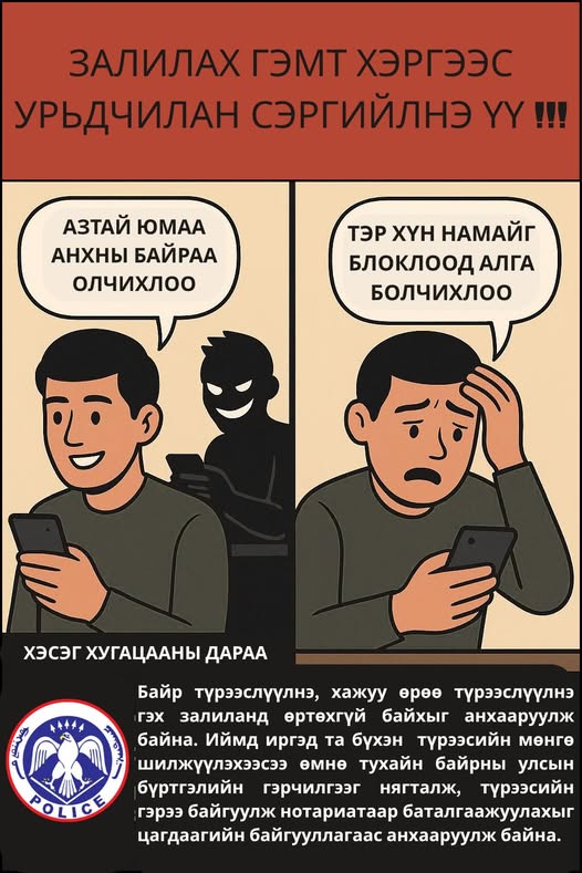 Нүүр хуудасМэдээСХД: Та залилах гэмт хэргээс урьдчилан сэргийлээрэй МэдээНийгэм СХД: Та залилах гэмт хэргээс урьдчилан сэргийлээрэй By Mandmn 8 сар 8, 2025 0 12 FacebookTwitterPinterestWhatsApp FacebookTwitterPinterestWhatsApp өмнөх нийтлэлЗГ: Баянхонгор аймаг улсын жишиг амбулаторитой боллооДараагийн нийтлэлЭТТ: “ЭРДЭНЭС ТАВАНТОЛГОЙ” ХК-ИЙН НҮҮРСНИЙ ЭКСПОРТ ИДЭВХЖИЖ ЭХЭЛЛЭЭ Mandmnhttps://mand.mn/ Холбоотой мэдээ Мэдээ COP17-ын санхүүжилтын талаар Саудын Арабтай санал солилцжээ Mandmn - 11 сар 21, 2025 Мэдээ Нийслэлийн 2026 оны төсвийн төсөлд дүгнэлт гаргах аудитын нээлт боллоо Mandmn - 11 сар 21, 2025 Нийгэм ЗГ: Эзэн Богд Чингис хааны мэндэлсний 863 жилийн ой, “Монгол бахархлын өдөр” тохиож байна Mandmn - 11 сар 21, 2025 ХАРИУ ҮЛДЭЭХ Хариу цуцлах санал: Сэтгэгдэл оруулна уу! нэр:* энд нэрээ оруулна уу и-мэйл:* Та буруу имэйл хаяг оруулсан байна! Энд имэйл хаягаа оруулна уу вэб хуудас: Намайг дараагийн удаа сэтгэгдэл бичихдээ энэ хөтөч дээр миний нэр, имэйл, вэбсайтаас аваарай. Δ This site uses Akismet to reduce spam. Learn how your comment data is processed. ИХ УНШИГДСАН “365 ӨДӨР БҮР АНХААРЧ ХАЙРЛАЯ” аян үргэлжилж байна 11 сар 21, 2025 COP17-ын санхүүжилтын талаар Саудын Арабтай санал солилцжээ 11 сар 21, 2025 Нийслэлийн 2026 оны төсвийн төсөлд дүгнэлт гаргах аудитын нээлт боллоо 11 сар 21, 2025 ЗГ: Эзэн Богд Чингис хааны мэндэлсний 863 жилийн ой, “Монгол бахархлын өдөр” тохиож байна 11 сар 21, 2025 илүү их ачаалах