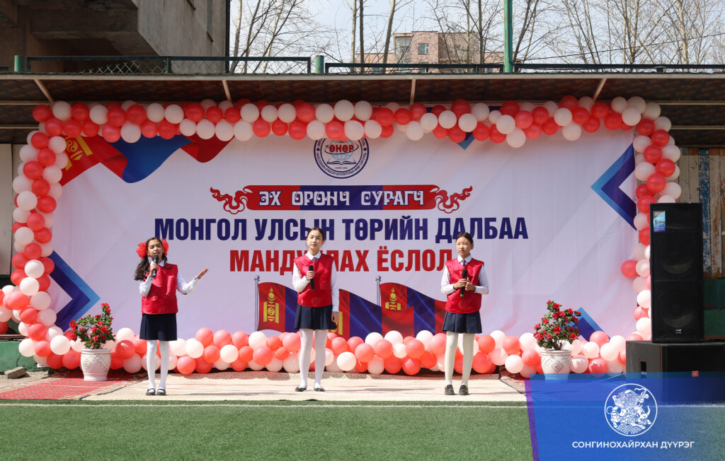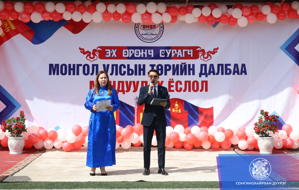 Монгол Улсын Төрийн далбааг хүндэтгэн дээдэлж, түүний утга учрыг ойлгуулах, сурагчдад эх оронч үзэл, хариуцлага, ёс суртахууны төлөвшил олгох, сургуулийн соёл, сахилга бат, хамтын ажиллагааг дэмжих зорилготой Монгол Улсын Төрийн далбаа мандуулж, буулгах ёслолын нээлтийн үйл ажиллагааг Өнөр сургууль зохион байгууллаа.