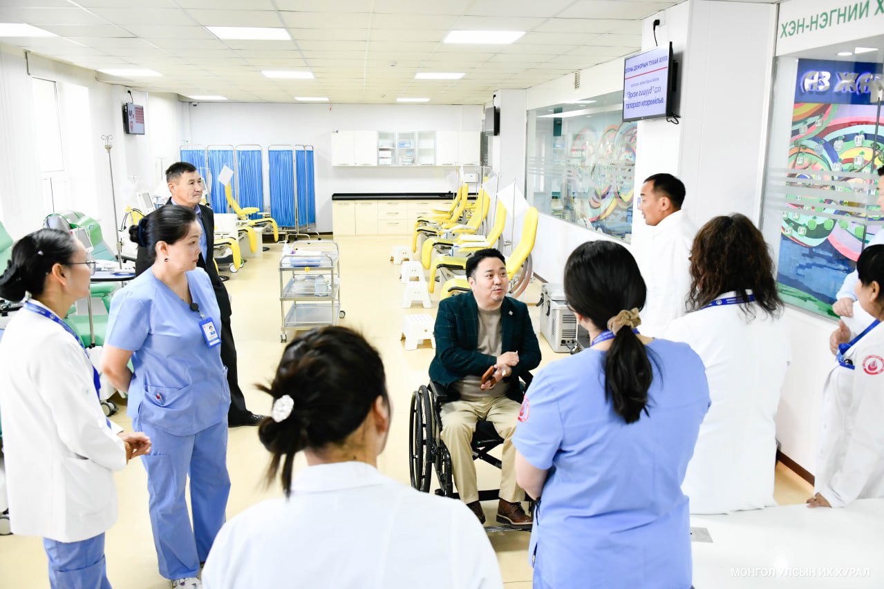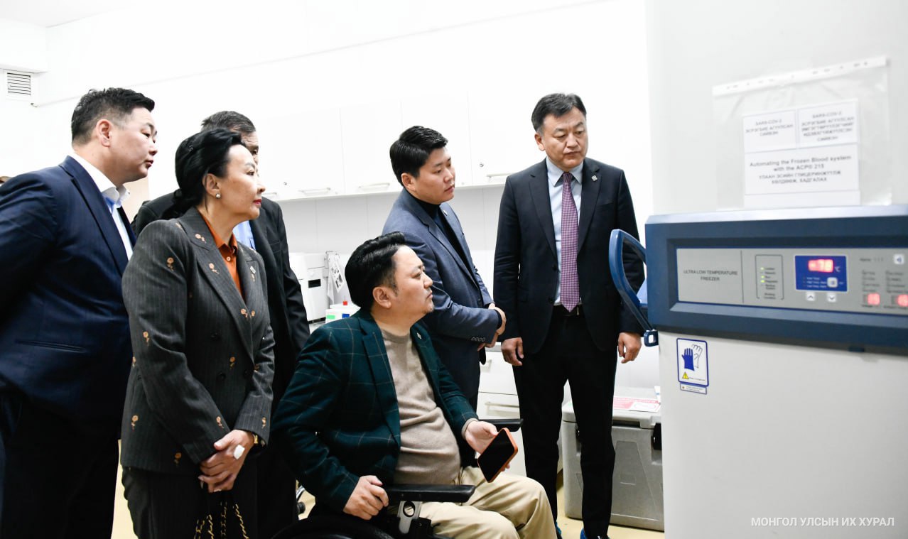 ЦССҮТ-ийн үйл ажиллагаатай танилцахад ажлын хэсгийн ахлагч, Улсын Их Хурлын гишүүн Ж.Баясгалан, гишүүн Х.Болормаа, С.Эрдэнэбат, Улсын Их Хурлын Хүний хөгжил, нийгмийн бодлогын байнгын хорооны дарга Б.Найдалаа, тус Байнгын хорооны гишүүн А.Ганбаатар, М.Ганхүлэг нар оролцож, төвийн Донор зохион байгуулалтын тасаг, Нэгдсэн лаборатори, Үйлдвэрлэлийн тасгийн болон түгээлтийн зарим ажилтай танилцаж, цусаа хандивлалаа. Төвийн шинэ барилга Азийн хөгжлийн банкны хөнгөлөлттэй зээлээр “Эрүүл мэндийн салбарын хөгжил хөтөлбөр-5” төслийн хүрээнд баригдаж 2016 онд ашиглалтад оржээ. Аюулгүй цус сэлбэлтийн тогтолцоог бэхжүүлэх дэд төслийг уг хөтөлбөрийн хүрээнд хэрэгжүүлж, улсын хэмжээний 26 цусны төвийн дэд бүтцийг сайжруулж, 21 аймгийн нэгдсэн эмнэлэг, Өвөрхангай аймгийн Хархорин, Завхан аймгийн Тосонцэнгэл, Сэлэнгэ аймгийн Мандал сумын эмнэлэг, нийслэлийн Багануур, Налайх дүүргийн цусны төвийн барилгыг засварлан, орчин үеийн өндөр хүчин чадал бүхий тоног төхөөрөмжөөр хангасан байна.