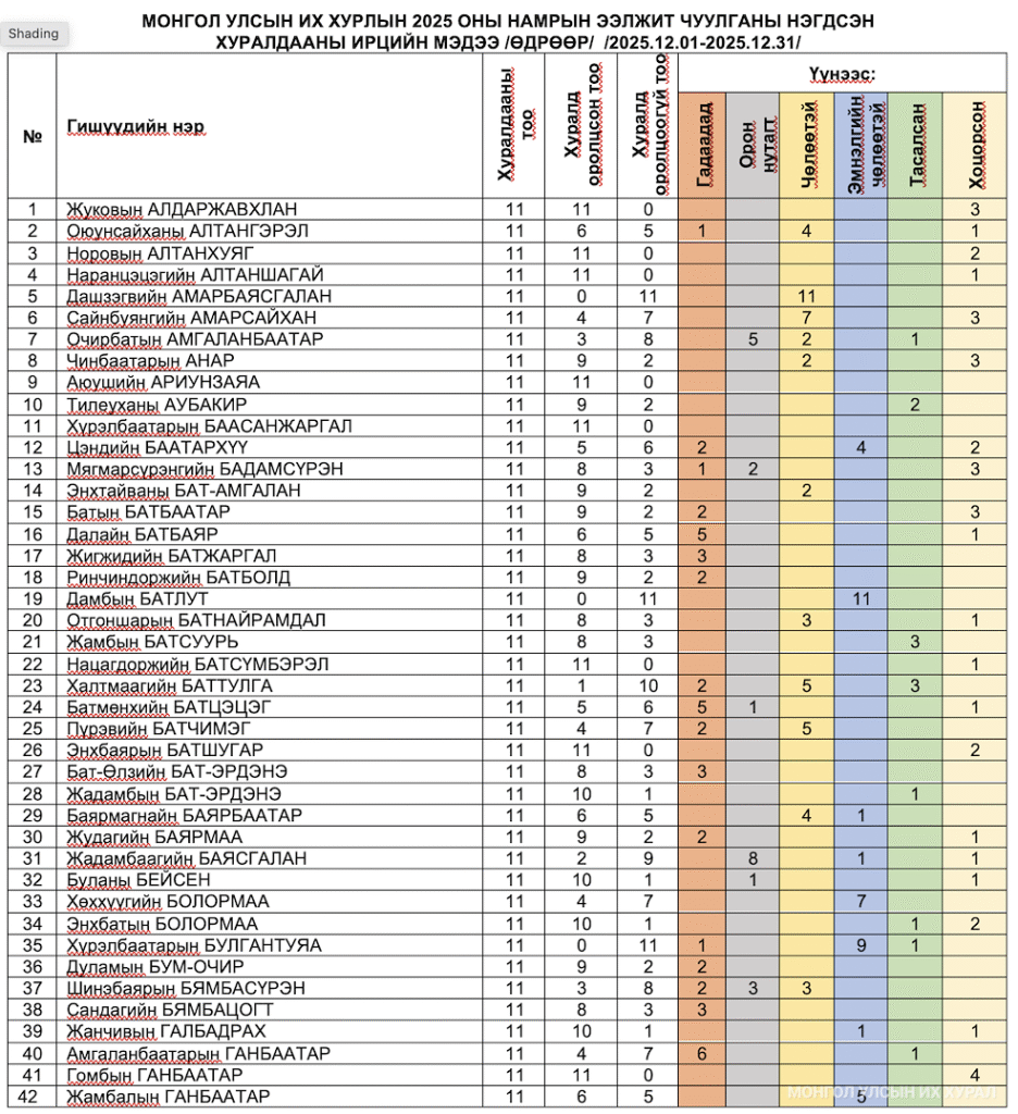Нүүр хуудасМэдээУИХ-ын намрын ээлжит чуулганаар 6 гишүүн чуулгандаа нэг ч суугаагүй бол 21... МэдээНийгэм УИХ-ын намрын ээлжит чуулганаар 6 гишүүн чуулгандаа нэг ч суугаагүй бол 21 гишүүн бүтэн суужээ By Mandmn 1 сар 14, 2026 0 13 FacebookTwitterPinterestWhatsApp FacebookTwitterPinterestWhatsApp өмнөх нийтлэлСХД хуванцар сав дахин боловсруулах үйлдвэртэй хамтарч ажиллахаар төлөвлөж байнаДараагийн нийтлэлНИЙСЛЭЛ: Дүүжин замын тээвэр төслийн кабинуудыг агуулахад буулгалаа Mandmnhttps://mand.mn/ Холбоотой мэдээ Мэдээ НИТХ: Монгол багш нарын бүтээсэн смарт чипийг БЗД-ийн гэмт хэрэг, зөрчлийн мэдээлэл их бүртгэгддэг орон сууцны 100 байршилд суулгажээ Mandmn - 1 сар 14, 2026 Мэдээ НИЙСЛЭЛ: Дүүжин замын тээвэр төслийн кабинуудыг агуулахад буулгалаа Mandmn - 1 сар 14, 2026 Мэдээ СХД хуванцар сав дахин боловсруулах үйлдвэртэй хамтарч ажиллахаар төлөвлөж байна Mandmn - 1 сар 14, 2026 ХАРИУ ҮЛДЭЭХ Хариу цуцлах санал: Сэтгэгдэл оруулна уу! нэр:* энд нэрээ оруулна уу и-мэйл:* Та буруу имэйл хаяг оруулсан байна! Энд имэйл хаягаа оруулна уу вэб хуудас: Намайг дараагийн удаа сэтгэгдэл бичихдээ энэ хөтөч дээр миний нэр, имэйл, вэбсайтаас аваарай. Δ This site uses Akismet to reduce spam. Learn how your comment data is processed. ИХ УНШИГДСАН НИТХ: Монгол багш нарын бүтээсэн смарт чипийг БЗД-ийн гэмт хэрэг, зөрчлийн мэдээлэл их бүртгэгддэг орон сууцны 100 байршилд суулгажээ 1 сар 14, 2026 НИЙСЛЭЛ: Дүүжин замын тээвэр төслийн кабинуудыг агуулахад буулгалаа 1 сар 14, 2026 СХД хуванцар сав дахин боловсруулах үйлдвэртэй хамтарч ажиллахаар төлөвлөж байна 1 сар 14, 2026 Эмч нар үйлдвэрийн ажилтан, ахмад настнуудын урьдчилан сэргийлэх үзлэгийг тасралтгүй үргэлжлүүлэх шаардлагатай байгааг хэллээ 1 сар 14, 2026 илүү их ачаалах