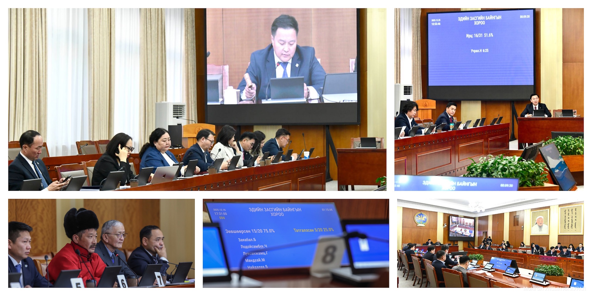 Үүний зэрэгцээ Үндэсний баялгийн сангийн тухай хуульд нэмэлт, өөрчлөлт оруулах тухай, Ашигт малтмалын тухай хуульд өөрчлөлт оруулах тухай, Зээлийн мэдээллийн тухай хуульд нэмэлт, өөрчлөлт оруулах тухай, Зөвшөөрлийн тухай хуульд нэмэлт, өөрчлөлт оруулах тухай зэрэг хуульд өөрчлөлт оруулах тухай хуулийн төслүүдийг Байнгын хорооны хуралдаанаар хэлэлцэн, нэгдсэн хуралдаанаар батлуулжээ.