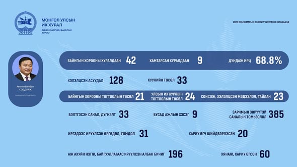 Монголбанкны Ерөнхийлөгчийн албан тушаалд нэр дэвших нэр дэвшигчийн сонсголыг зохион байгуулав. Нэр дэвшигчийн сонсголын үйл ажиллагаа 2025 оны 11 дүгээр сарын 25-ны өдөр “Нэр дэвшигчийн сонсголын тов тогтоох, сонсгол даргалагчийг сонгох тухай” тогтоолыг Байнгын хорооноос баталснаар эхэлж, 12 дугаар сарын 17-ны өдөр нэр дэвшигчийн сонсголыг зохион байгуулсан юм. Түүнчлэн Санхүүгийн зохицуулах хорооны дарга, орон тооны бус гишүүн, Хяналтын зөвлөлийн дарга, гишүүн, Монголбанкны Мөнгөний бодлогын хорооны орон тооны бус гишүүн, Монголбанкны Хяналтын зөвлөлийн дарга, гишүүн, Үндэсний статистикийн хорооны зөвлөлийн гишүүнд нэр дэвшигчийн сонсголыг зохион байгуулсан байна. Нэр дэвшигч сонгон шалгаруулах үйл ажиллагаа хоёр сар гаруй үргэлжилж, нэр дэвшихээр ирүүлсэн 45 хүсэлтээс 20 албан тушаалд нэр дэвших хүсэлтийг сонгон шалгаруулжээ. Улмаар холбогдох нэр дэвшигчийн сонсголуудыг зохион байгуулж, Улсын Их Хурлын эрхлэх асуудлын хүрээний харьяа байгууллагын удирдах албан тушаалд томилуулахаар нэр дэвшүүлсэн байна. Бүрэн эрхийн хугацаа дуусгавар болсноос хойш, эдгээр албан тушаалуудад хуульд заасны дагуу 3-8 жилийн турш томилгоо хийгээгүй, үйл ажиллагаа зогсонги байдалд орсон байсныг Улсын Их Хурал энэхүү бүрэн эрхийнхээ хугацаанд шийдвэрлэн томилгоог хийж, үүсээд байсан гажуудлыг арилгасан.