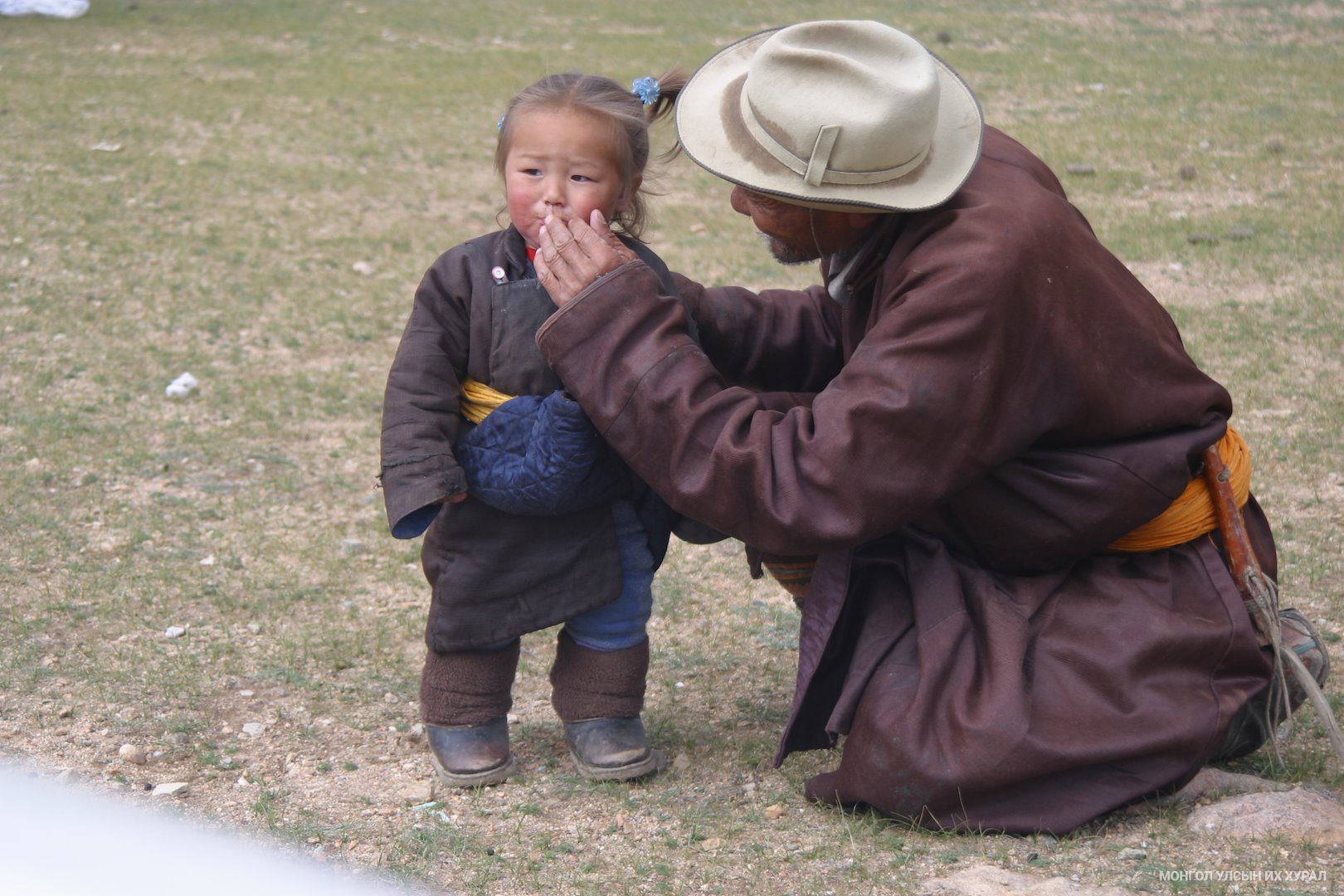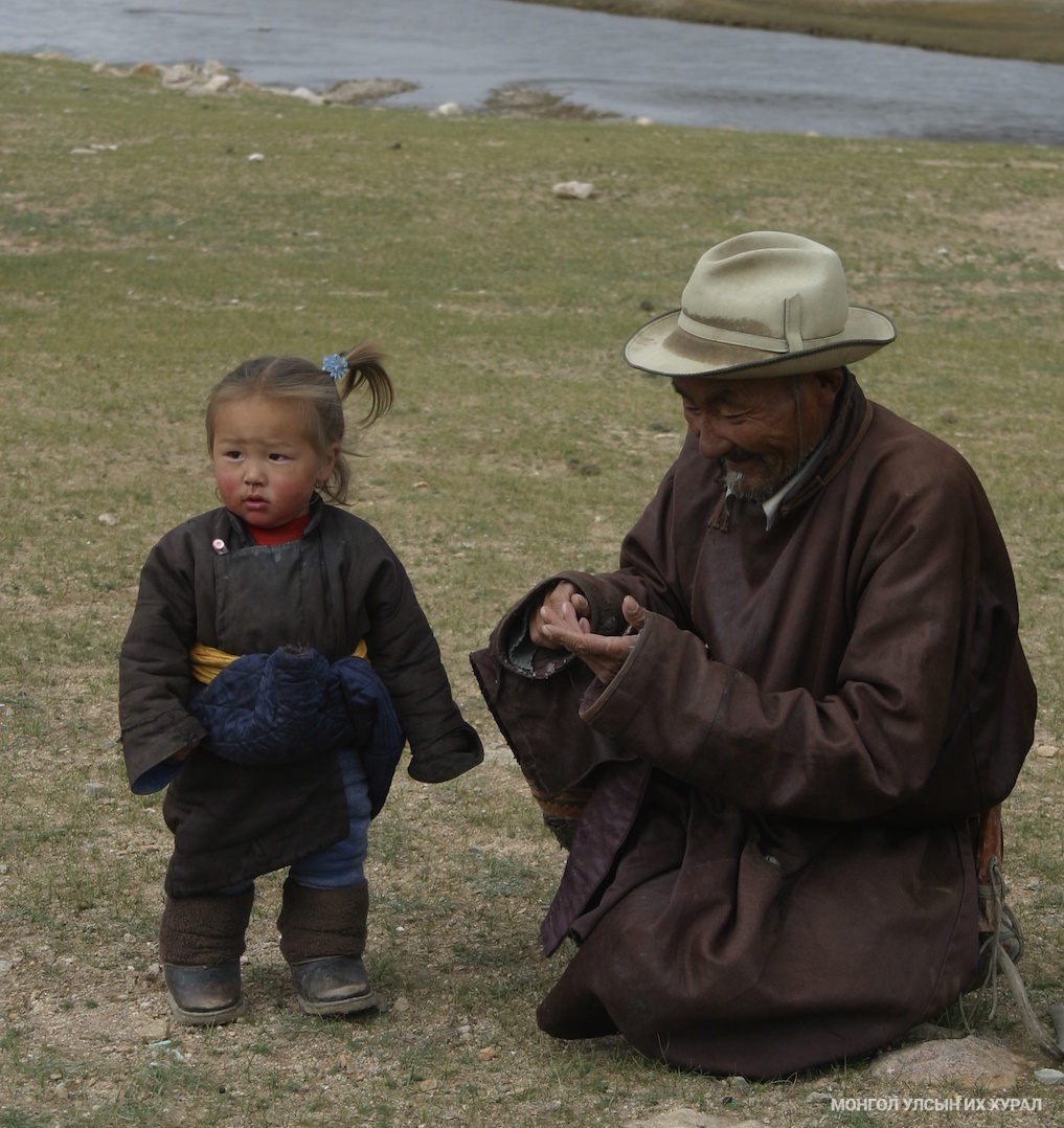 Ач хүү, өвөө хоёр ярилцаж байна.