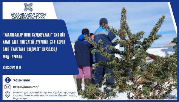 Чингэлтэй дүүргийн 23-р хорооны Олон булагтайн цэцэрлэгт хүрээлэнд “Тэрбум мод” үндэсний хөдөлгөөний хүрээнд Улаанбаатар орон сууцжуулалт ХХК-ийн ажилтан, албан хаагчид 50 ширхэг гацуур мод тарилаа.