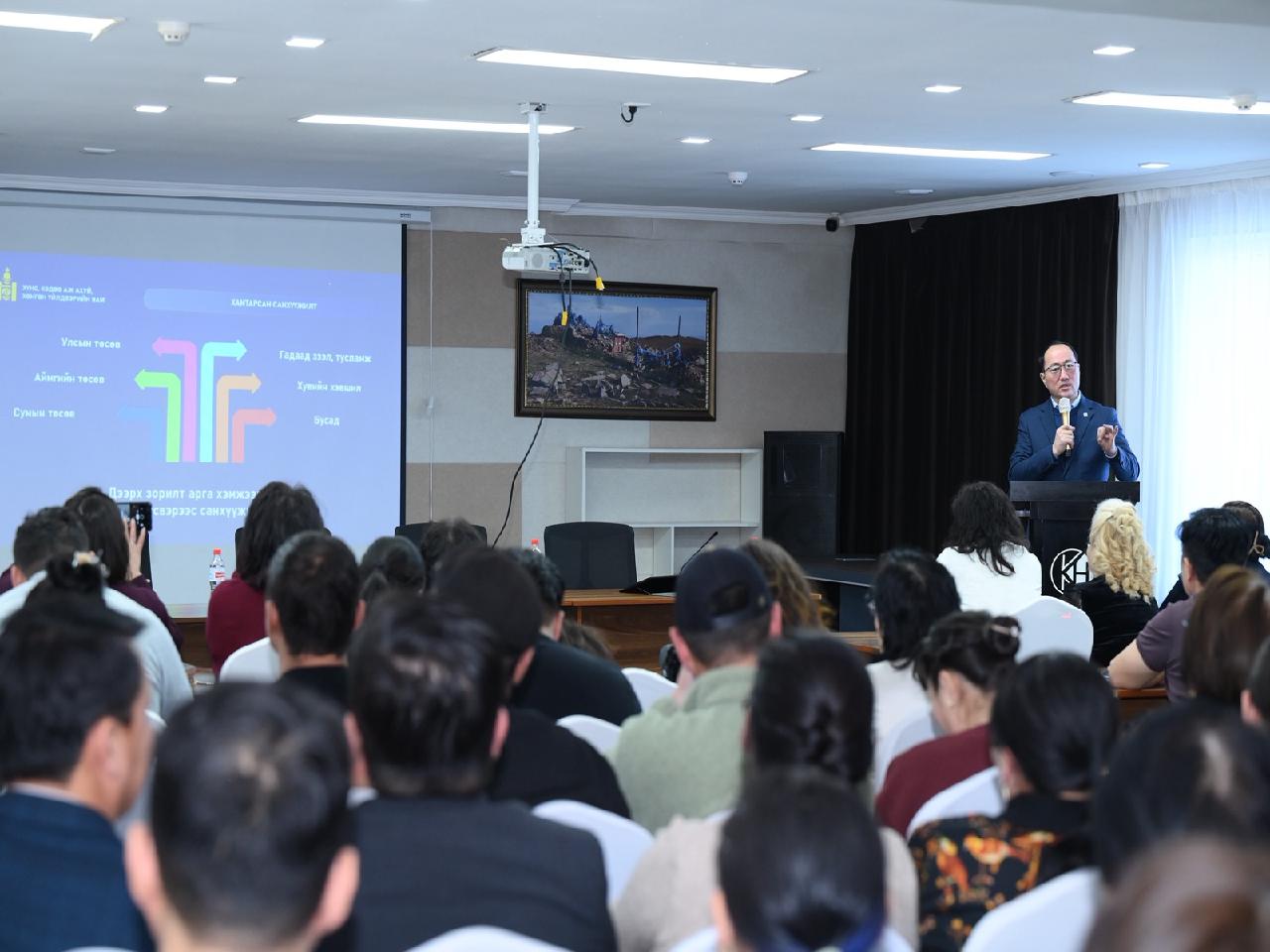 Тэрбээр төрийн бодлогын үр өгөөжийг дээшлүүлэх, хүртээмжийг нэмэгдүүлэхийн иргэдэд мэдээллээр хангах чухал гэдгийг тодотгоод Жижиг, дунд үйлдвэр, үйлчилгээг дэмжих тухай хуулийн нэмэлт, өөрчлөлтийн төсөл, түүний зорилго, ач холбодлын талаар танилцууллаа.
