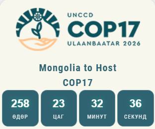 Цөлжилттэй тэмцэх тухай НҮБ-ын Конвенцын Талуудын 17 дугаар бага хурал 2026 оны наймдугаар сарын 17-28-нд Монгол Улсад зохион байгуулагдана. Дэлхийн хэмжээний томоохон хурал болоход 258 хоног үлдээд байна.